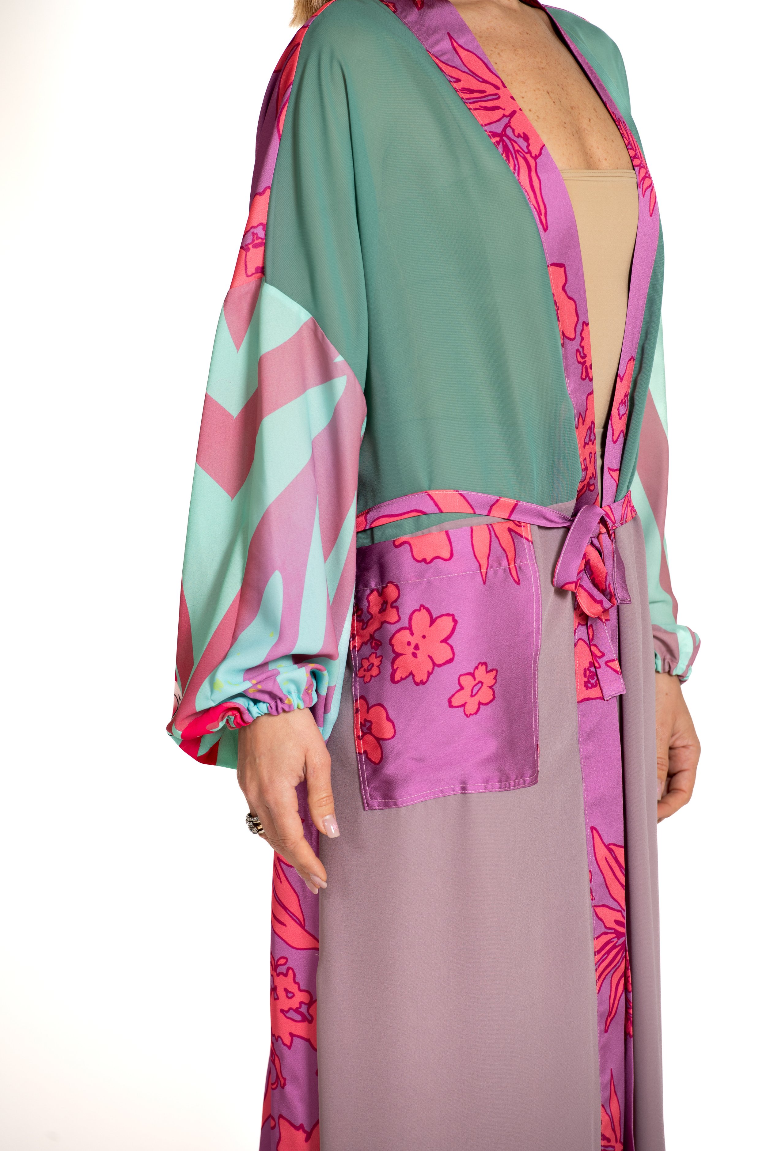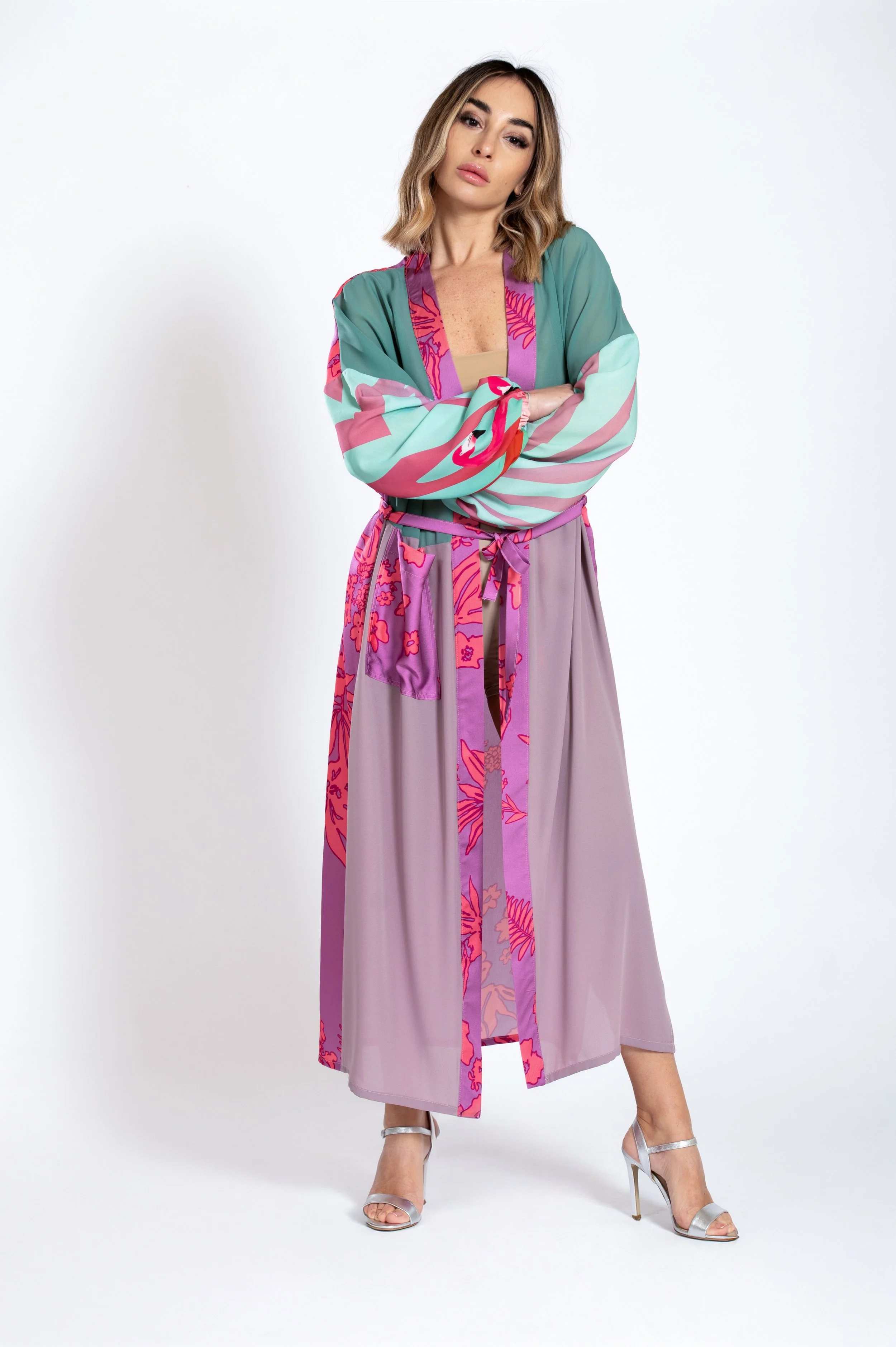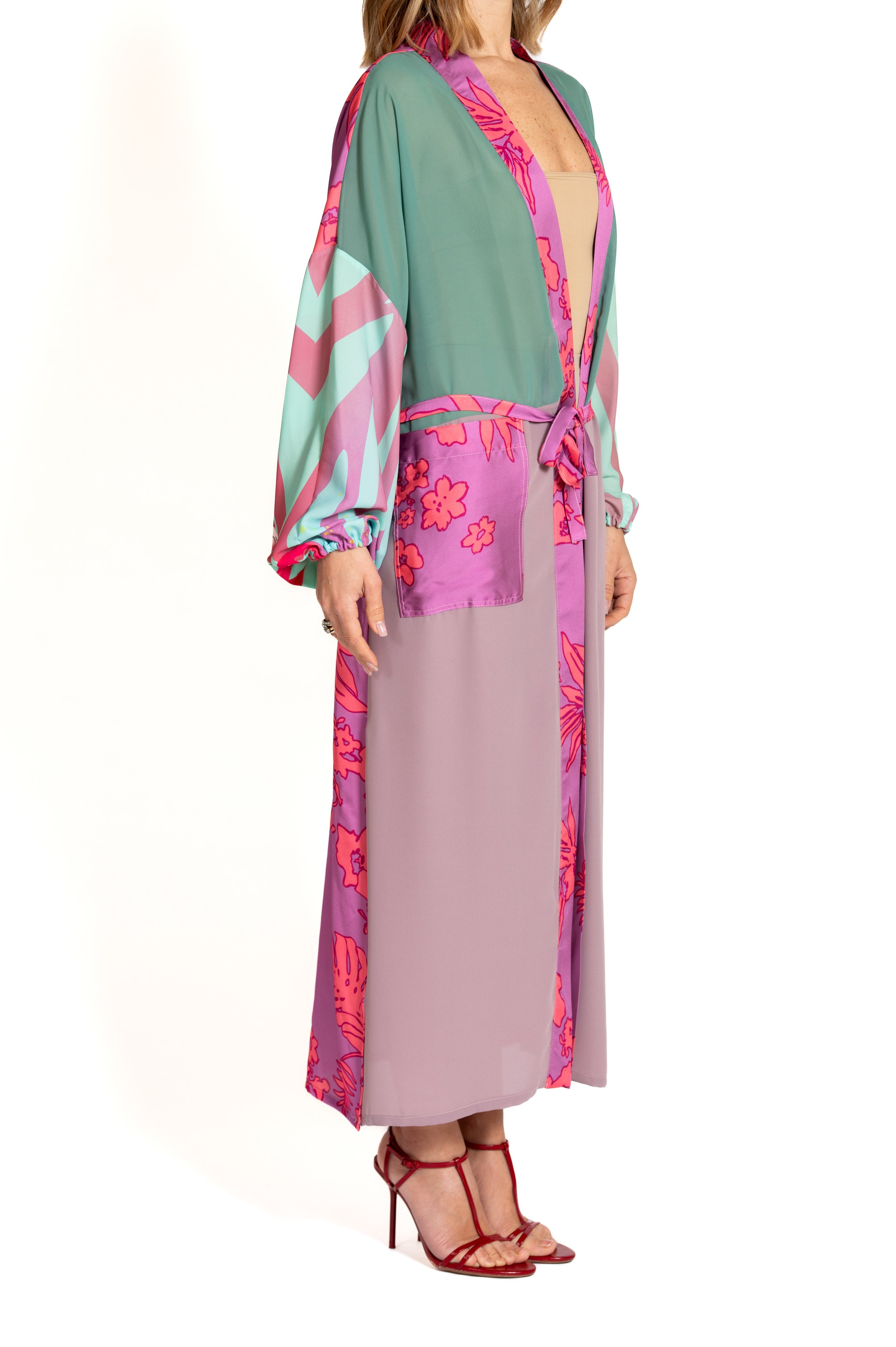Il kimono Myaurea è l'espressione di un lusso sostenibile, pensato per la donna che vuole indossare qualcosa di unico e originale. Ogni kimono è realizzato a mano, combinando diversi. Le texture e le fantasie variano, ma il risultato è sempre lo stesso: un capo elegante, leggero e dallo spirito libero. Con il suo mood radical chic e la sua sartorialità, il kimono Myaurea non è solo un indumento, ma un simbolo di stile, libertà e sostenibilità. Unico nel design e nella produzione, è il perfetto alleato per ogni occasione, per chi desidera distinguersi con eleganza e consapevolezza.
