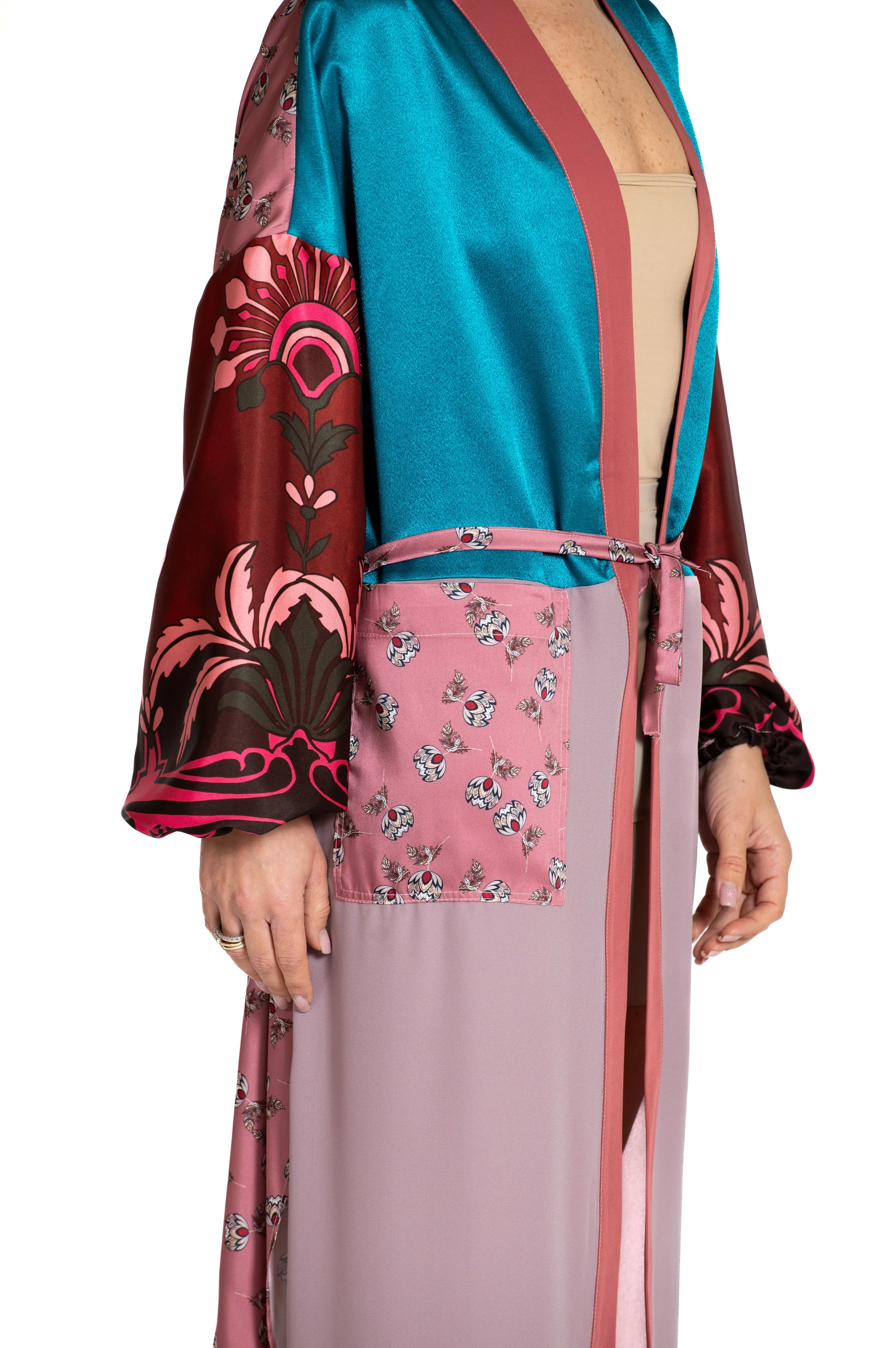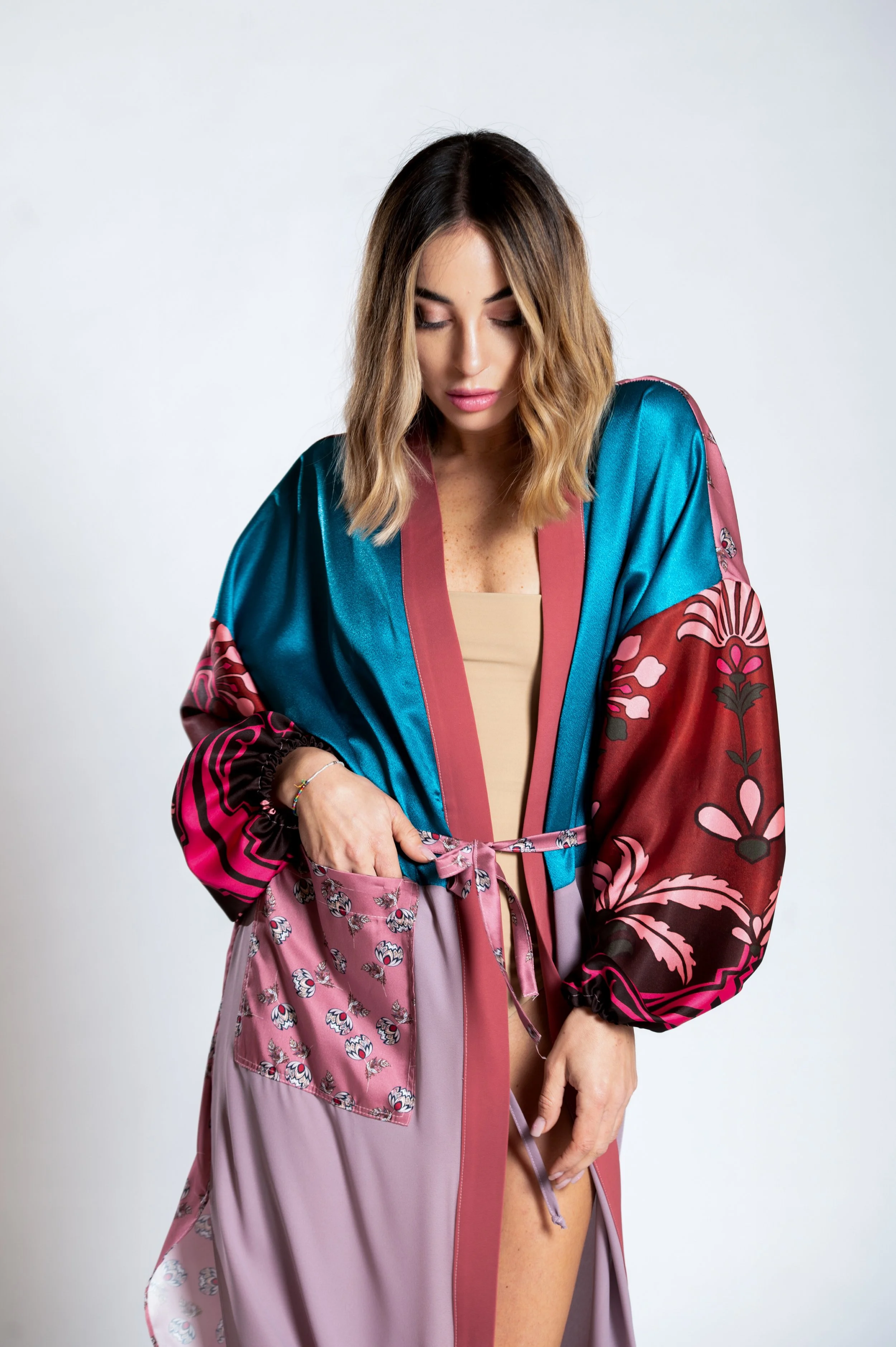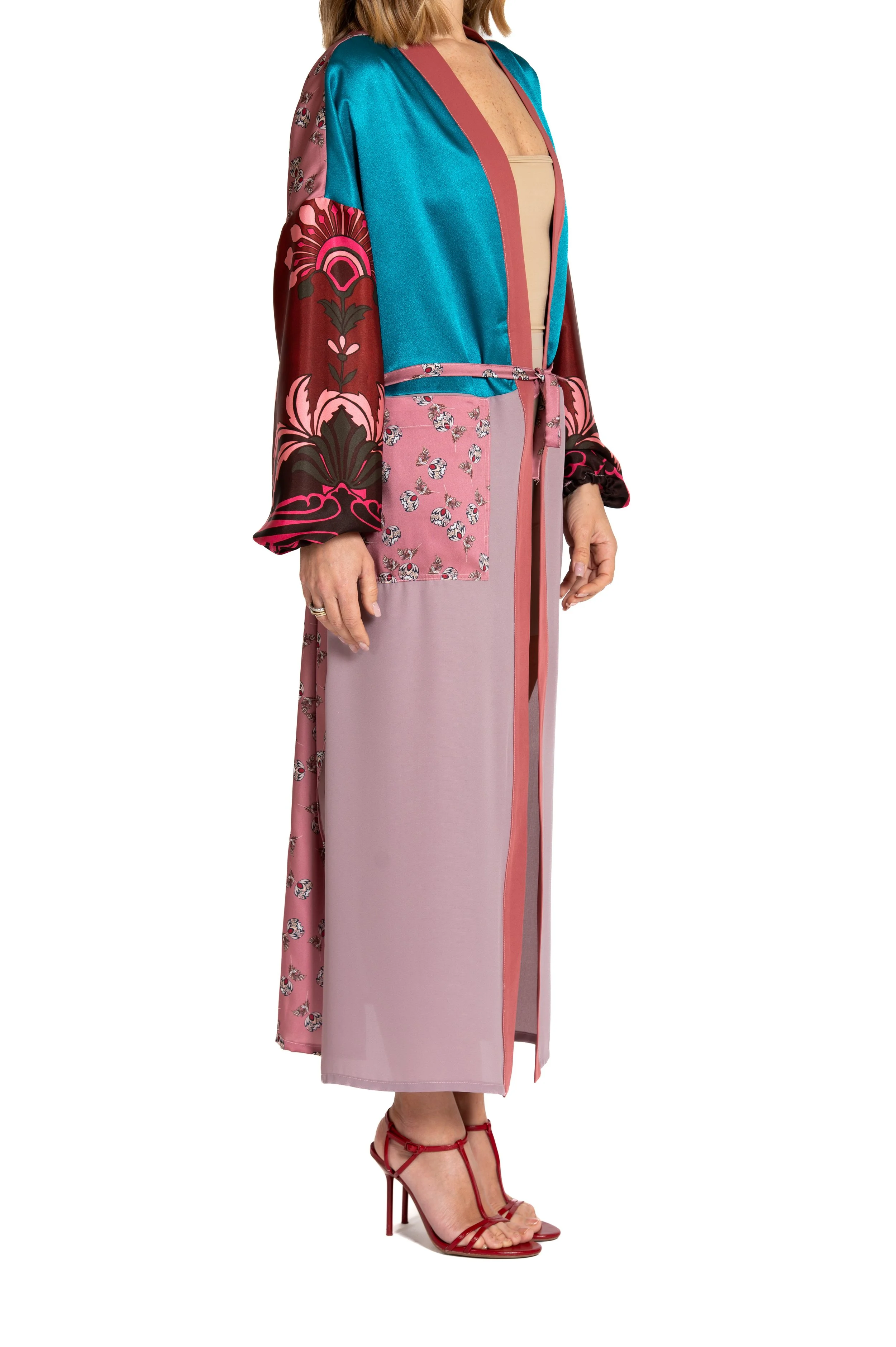 Il kimono Myaurea è l'espressione di un lusso sostenibile, pensato per la donna che vuole indossare qualcosa di unico e originale. Ogni kimono è realizzato a mano, combinando diversi. Le texture e le fantasie variano, ma il risultato è sempre lo stesso: un capo elegante, leggero e dallo spirito libero. Con il suo mood radical chic e la sua sartorialità, il kimono Myaurea non è solo un indumento, ma un simbolo di stile, libertà e sostenibilità. Unico nel design e nella produzione, è il perfetto alleato per ogni occasione, per chi desidera distinguersi con eleganza e consapevolezza.