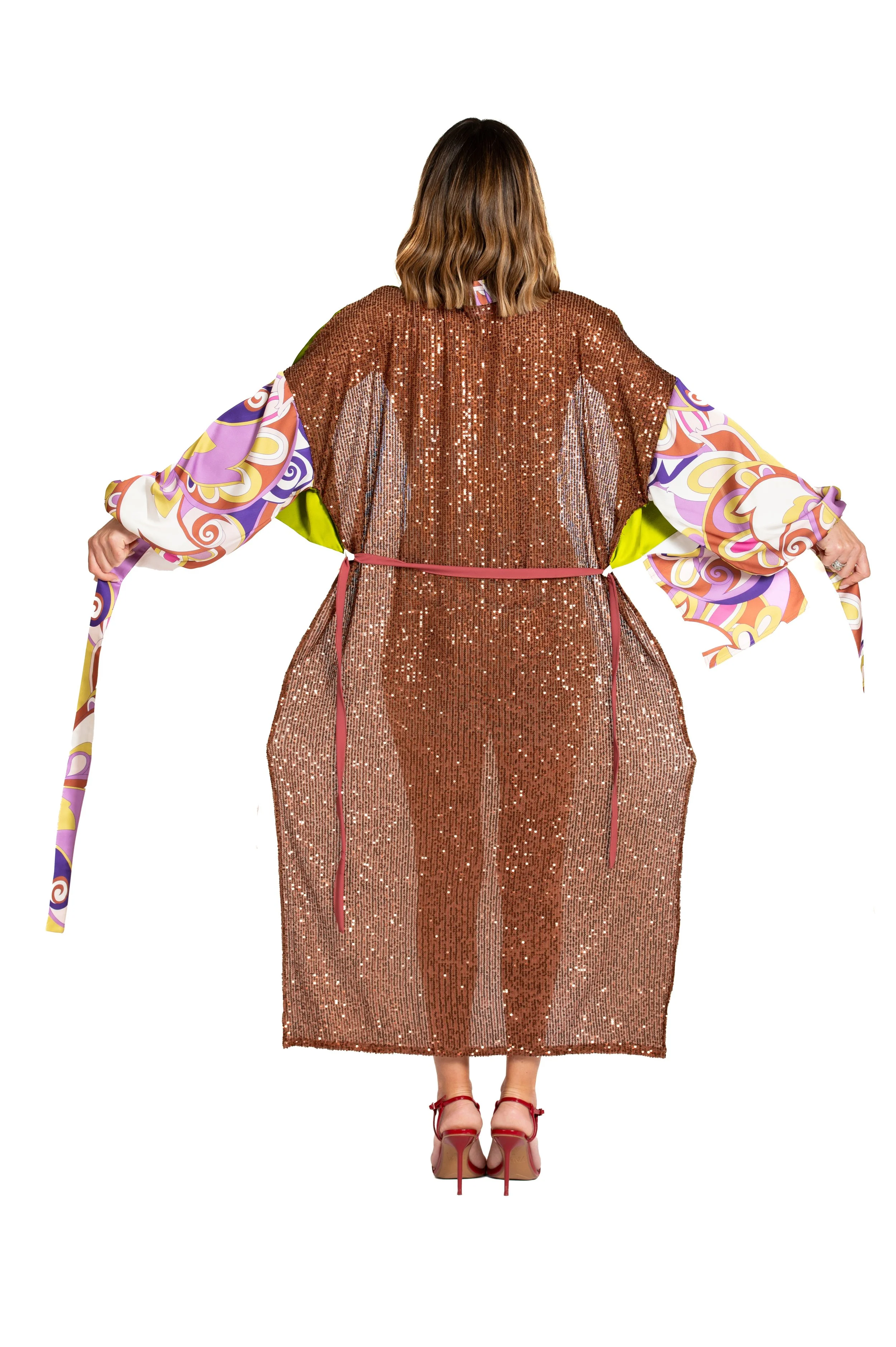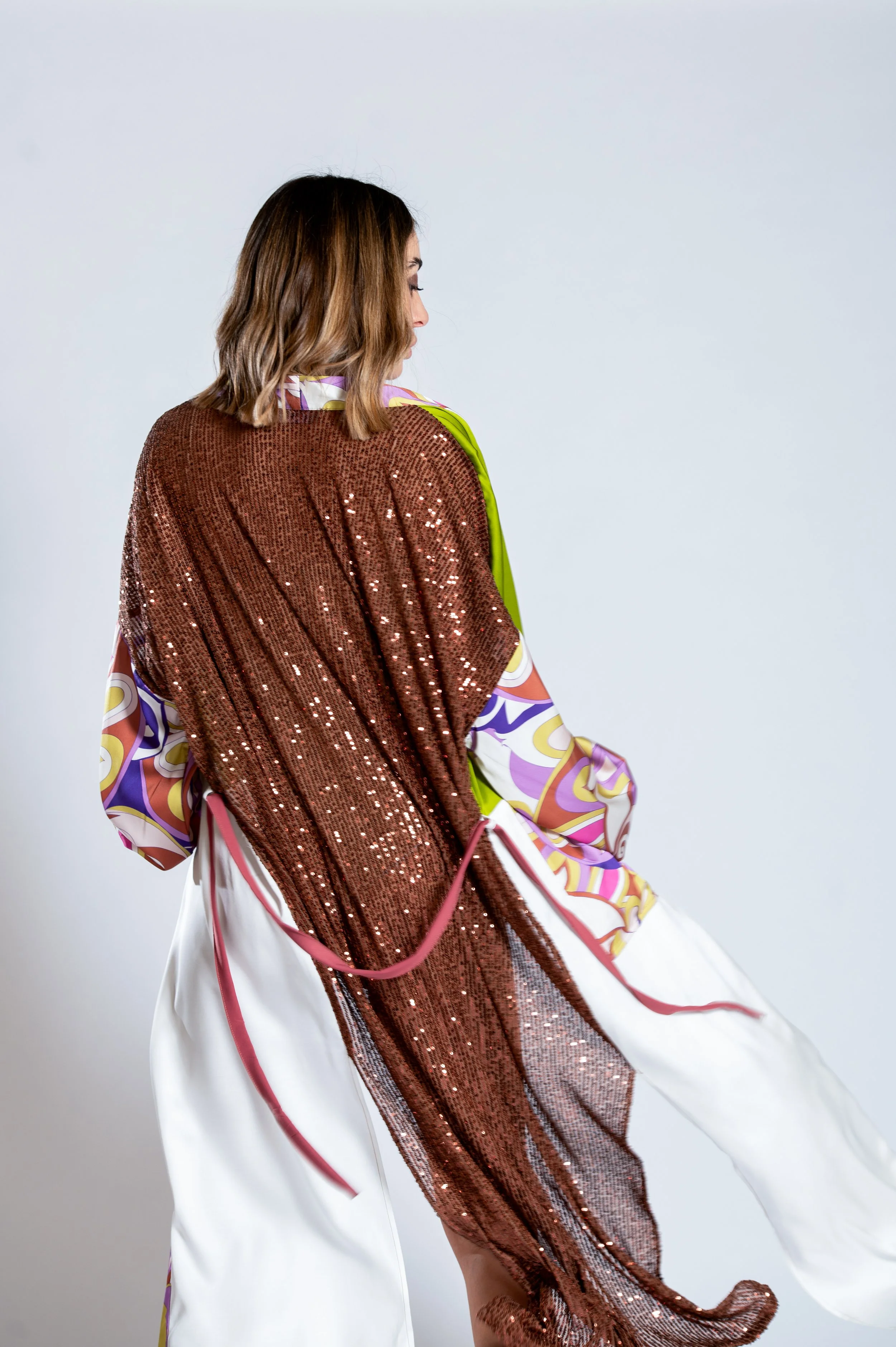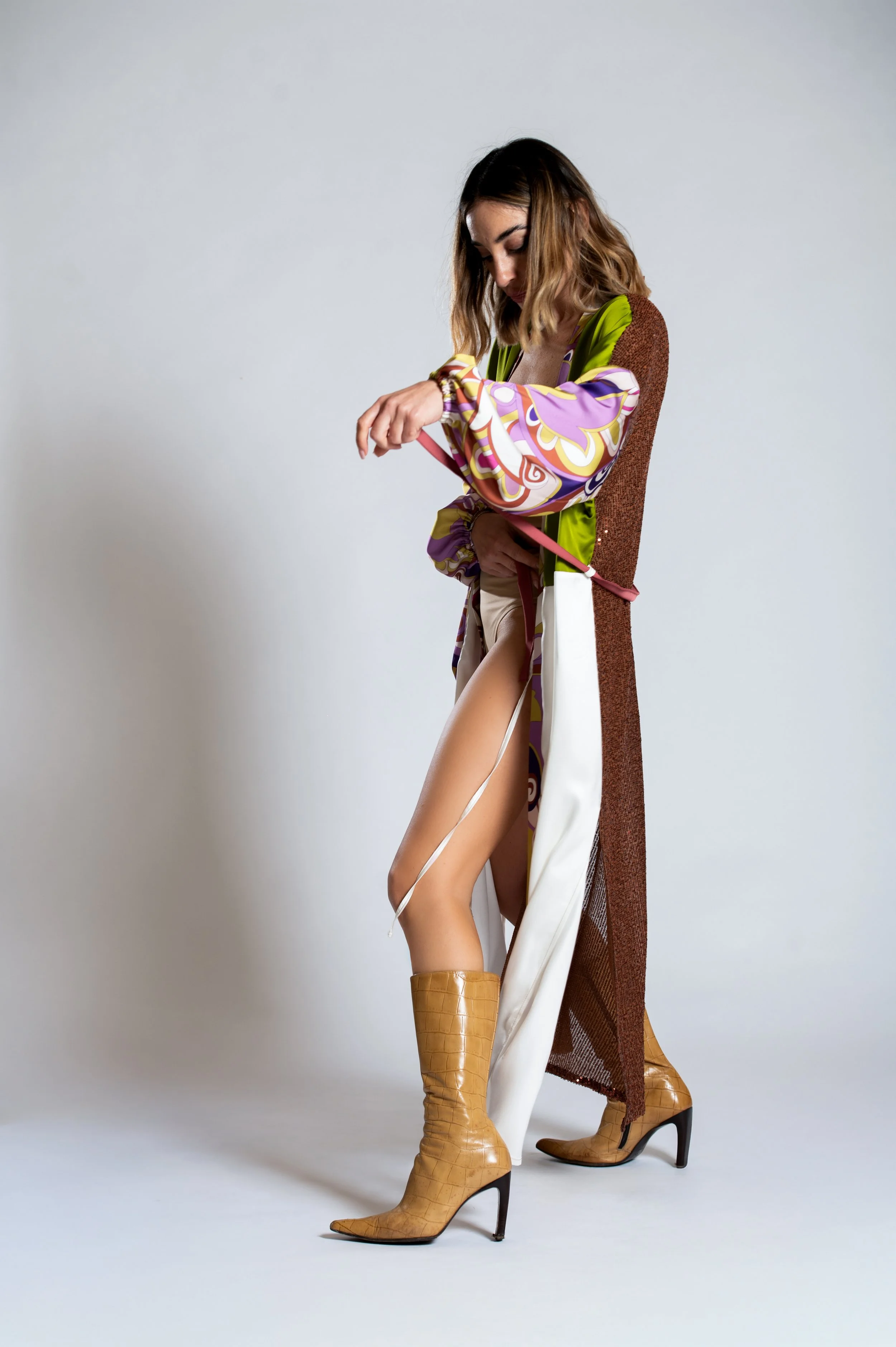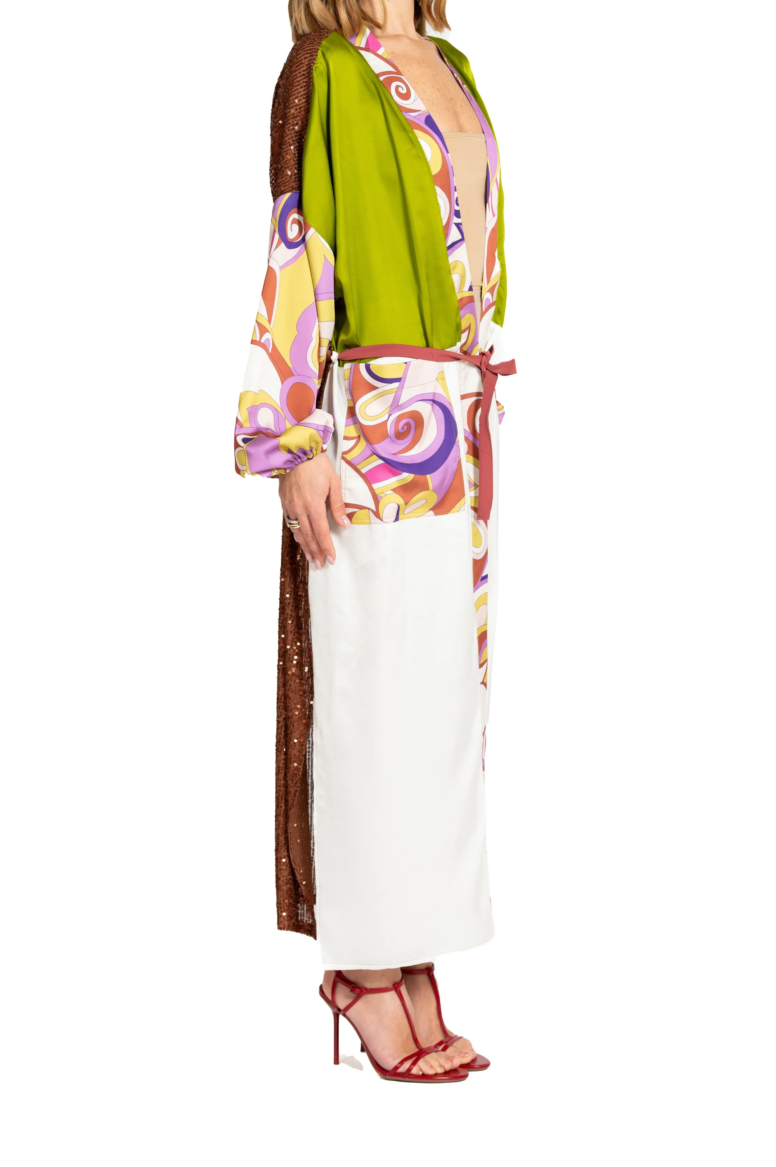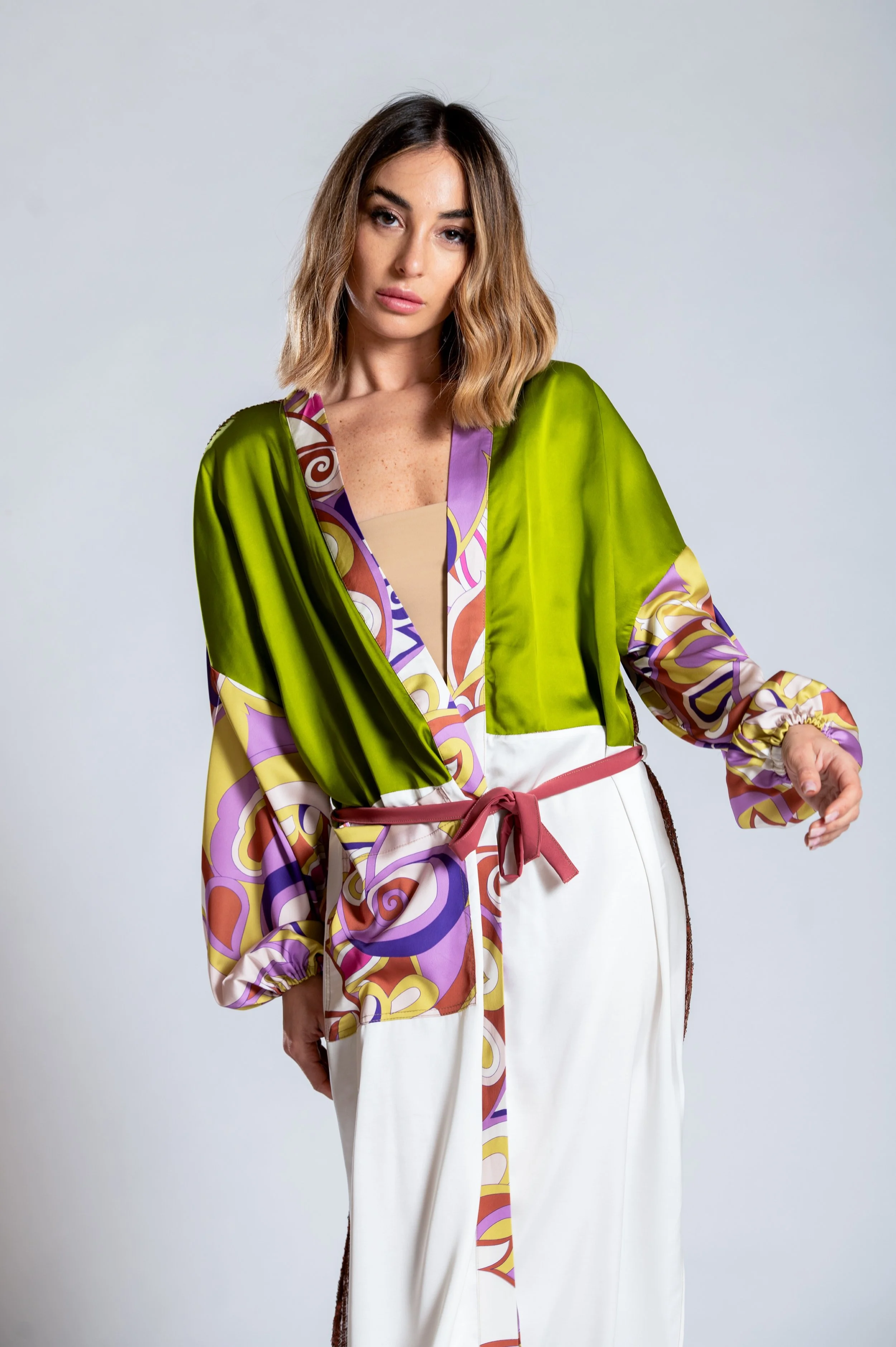 Il kimono Myaurea è l'espressione di un lusso sostenibile, pensato per la donna che vuole indossare qualcosa di unico e originale. Ogni kimono è realizzato a mano, combinando diversi. Le texture e le fantasie variano, ma il risultato è sempre lo stesso: un capo elegante, leggero e dallo spirito libero. Con il suo mood radical chic e la sua sartorialità, il kimono Myaurea non è solo un indumento, ma un simbolo di stile, libertà e sostenibilità. Unico nel design e nella produzione, è il perfetto alleato per ogni occasione, per chi desidera distinguersi con eleganza e consapevolezza.